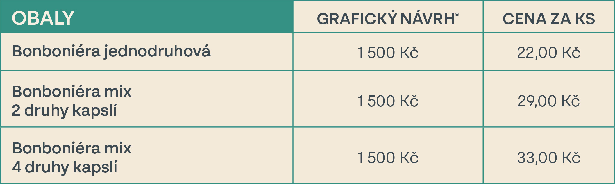 Vyberte si kávu, kterou vám připravíme do vašich firemních dárkových krabiček. Kapsle vám umíme v balení kombinovat. Chcete kávu nejdřív ochutnat? Nestyďte se a zavolejte nám.